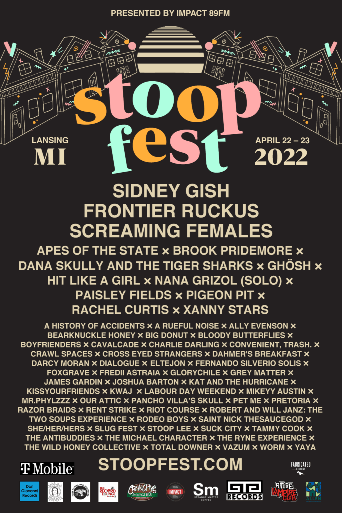 4/22 & 4/23 – STOOPFEST(Lansing) feat Screaming Females, Sidney Gish, Frontier Ruckus and many, many more! (Including Cavalcade, Wild Honey and A Rueful Nosie)