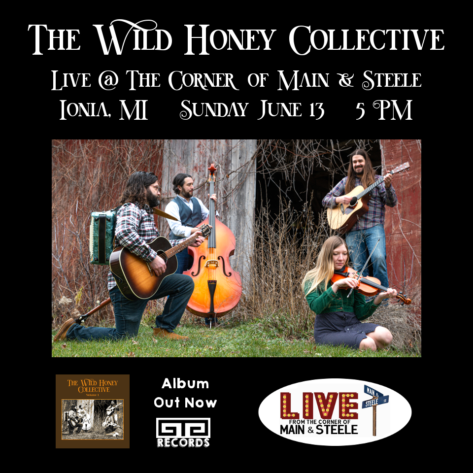 2021 is bringing some shows! The Wild Honey Collective will be gracing The Corner of Main & Steele in Ionia, MI with a full-length set on Sunday June 13– this band has been playing virtual shows for almost a year but this is, at last, a, for real, in-person show. No cover, bring a lawn chair!